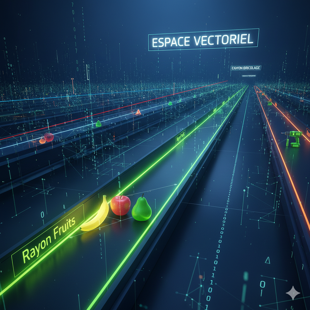 Pour l’IA, comprendre le sens d’un mot, c’est simplement savoir où il est rangé dans ce supermarché et qui sont ses voisins.