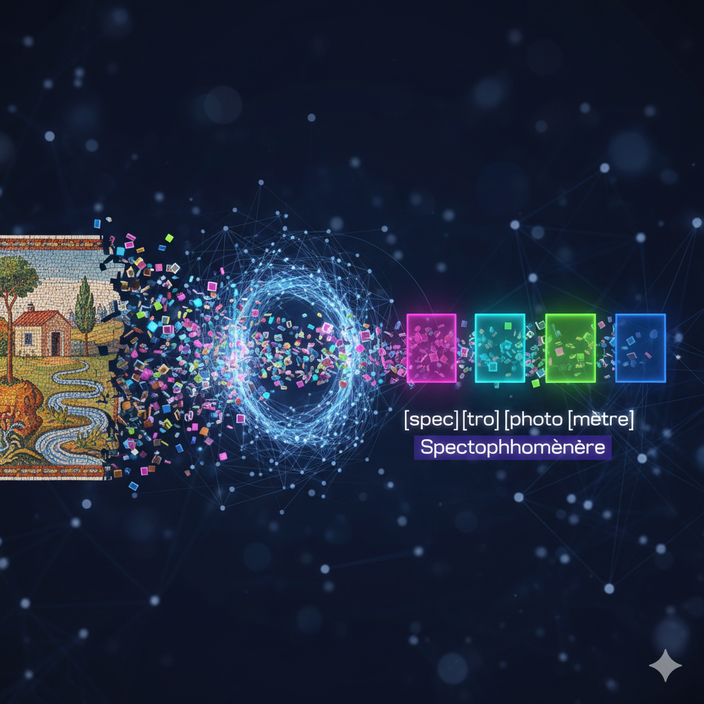 L’IA ne voit pas le mot complexe « Spectrophotomètre « comme un bloc unique. Elle le découpe en plusieurs carreaux distincts (tokens), par exemple : [spec] [tro] [photo] [mètre].